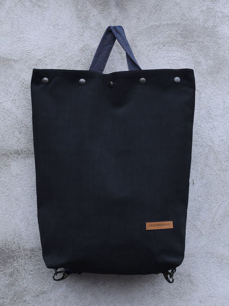 Bike ruksak izrađen je od eko kože i traka od trapera ili kepera (ovisno o dostupnim materijalima). Sastoji se od podesivih ručaka za nošenje koje se pomoću metalnih kopči pretvaraju u vezice pomoću kojih je ruksak moguće zavezati na volan bicikla.