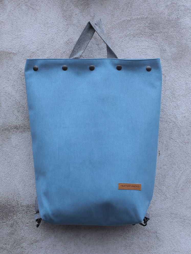 Bike ruksak izrađen je od eko kože i traka od trapera ili kepera (ovisno o dostupnim materijalima). Sastoji se od podesivih ručaka za nošenje koje se pomoću metalnih kopči pretvaraju u vezice pomoću kojih je ruksak moguće zavezati na volan bicikla.