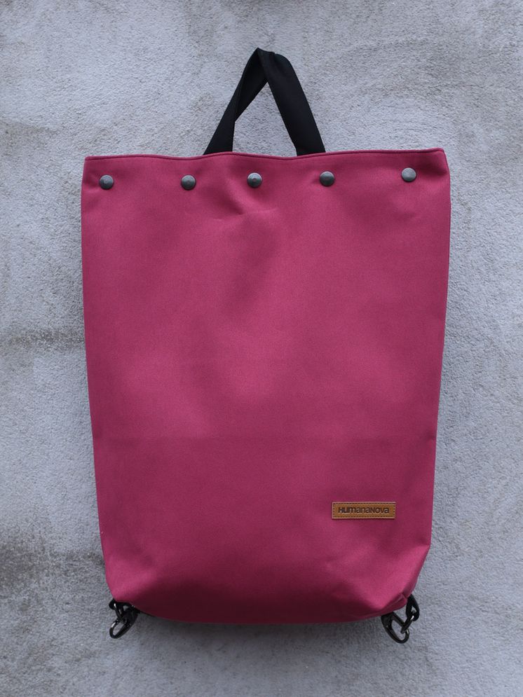Bike ruksak izrađen je od eko kože i traka od trapera ili kepera (ovisno o dostupnim materijalima). Sastoji se od podesivih ručaka za nošenje koje se pomoću metalnih kopči pretvaraju u vezice pomoću kojih je ruksak moguće zavezati na volan bicikla.