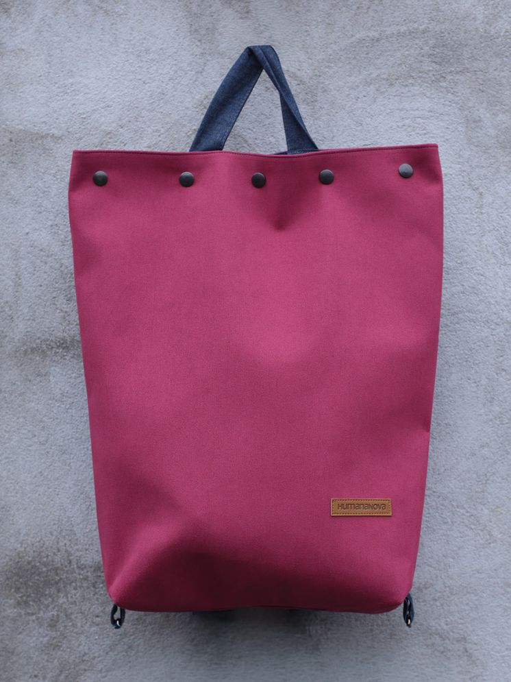 Bike ruksak izrađen je od eko kože i traka od trapera ili kepera (ovisno o dostupnim materijalima). Sastoji se od podesivih ručaka za nošenje koje se pomoću metalnih kopči pretvaraju u vezice pomoću kojih je ruksak moguće zavezati na volan bicikla.