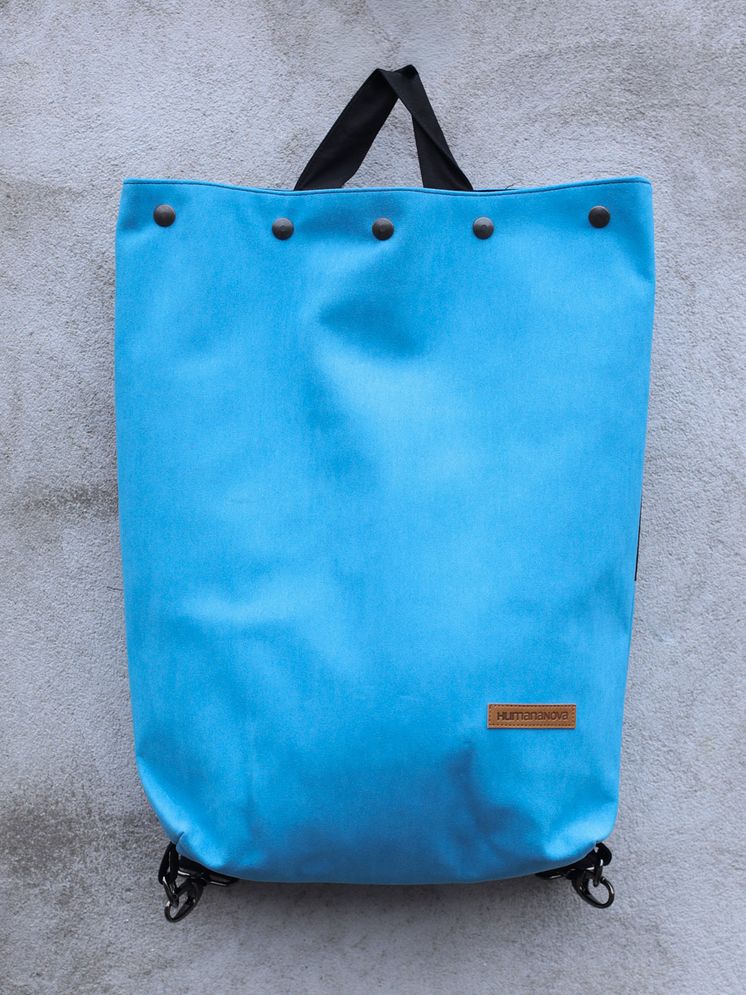 Bike ruksak izrađen je od eko kože i traka od trapera ili kepera (ovisno o dostupnim materijalima). Sastoji se od podesivih ručaka za nošenje koje se pomoću metalnih kopči pretvaraju u vezice pomoću kojih je ruksak moguće zavezati na volan bicikla.
