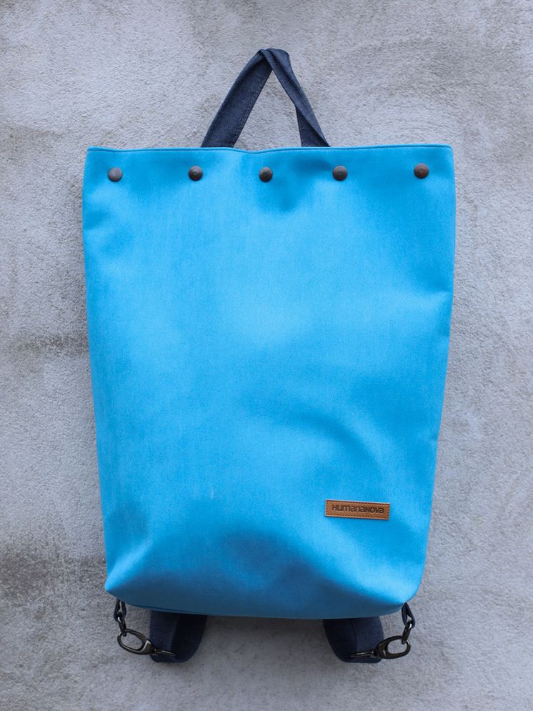 Bike ruksak izrađen je od eko kože i traka od trapera ili kepera (ovisno o dostupnim materijalima). Sastoji se od podesivih ručaka za nošenje koje se pomoću metalnih kopči pretvaraju u vezice pomoću kojih je ruksak moguće zavezati na volan bicikla.