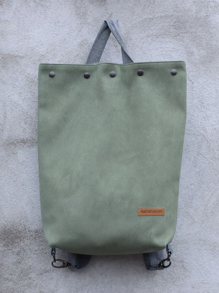 Bike ruksak izrađen je od eko kože i traka od trapera ili kepera (ovisno o dostupnim materijalima). Sastoji se od podesivih ručaka za nošenje koje se pomoću metalnih kopči pretvaraju u vezice pomoću kojih je ruksak moguće zavezati na volan bicikla.