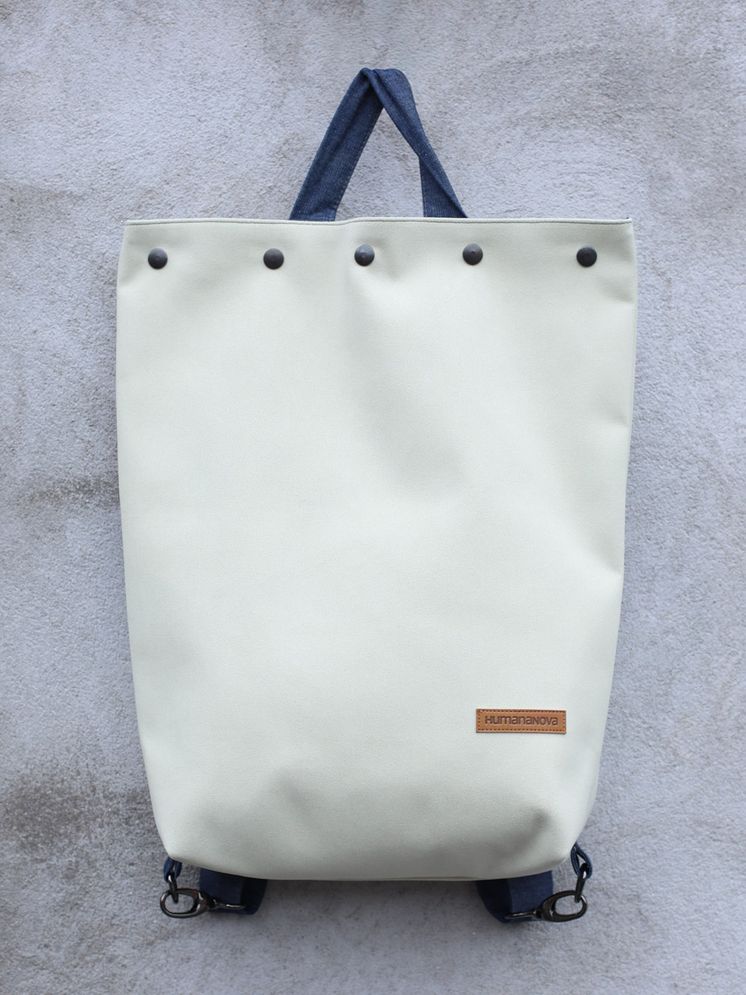 Bike ruksak izrađen je od eko kože i traka od trapera ili kepera (ovisno o dostupnim materijalima). Sastoji se od podesivih ručaka za nošenje koje se pomoću metalnih kopči pretvaraju u vezice pomoću kojih je ruksak moguće zavezati na volan bicikla.