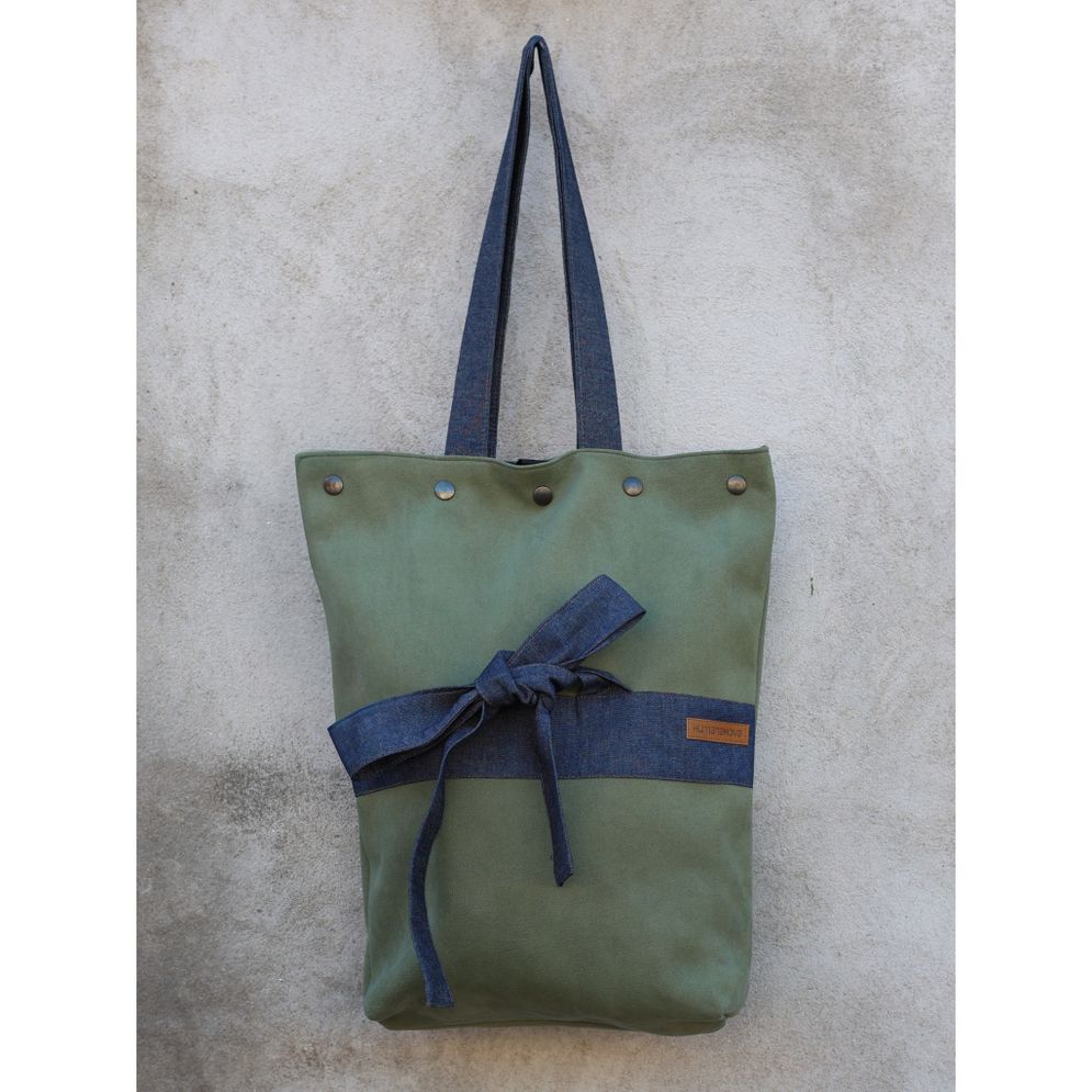 Bike torba izrađena je od eko kože i kombinacije ostalih materijala. Sastoji se od ručaka za nošenje u jednoj ruci te od vezica pomoću kojih je torbu moguće zavezati na volan bicikla.