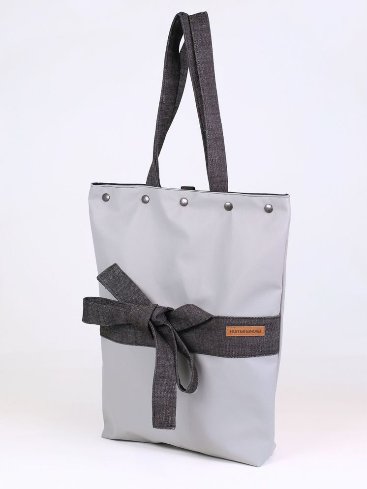 Bike torba izrađena je od eko kože i kombinacije ostalih materijala. Sastoji se od ručaka za nošenje u jednoj ruci te od vezica pomoću kojih je torbu moguće zavezati na volan bicikla.
