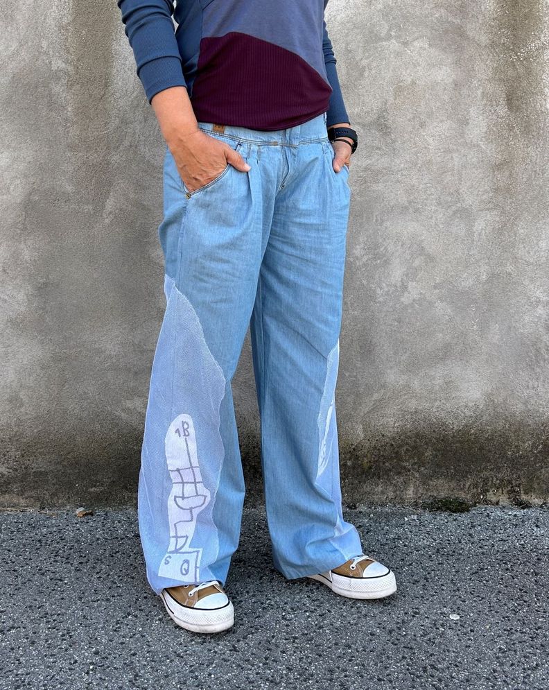 Lagane i udobne traper hlače zvonastog oblika, s unikatnim aplikacijama na nogavicama. Veličina: S-M