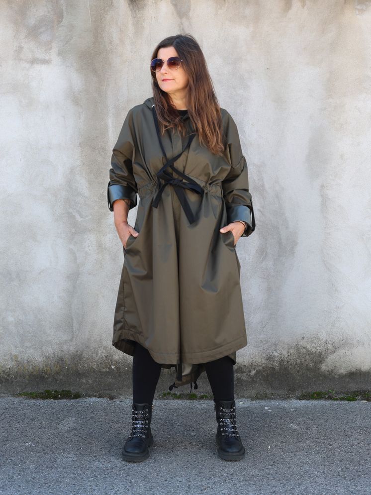 Praktična i održiva, ova vodonepropusna kabanica izrađena je od recikliranog materijala koji štiti od kiše. Dolazi u nekoliko boja i funkcionalnom kroju koji se lako kombinira s različitim stilovima.