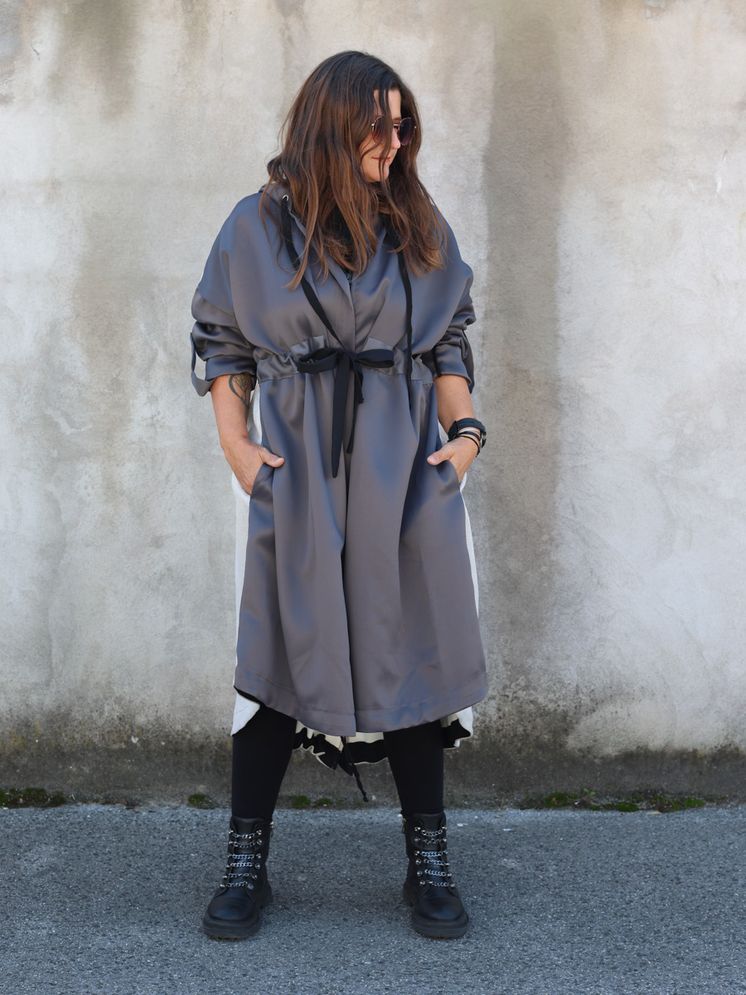 Dolazi u dvije veličine, s krojem koji se lako prilagođava različitim oblicima tijela. Parka ima zatvarač i vezice za podešavanje u struku, a pomoću trakica s prednje i stražnje strane moguće je oblikovati nabor prema želji. Funkcionalna, udobna i održiva – idealna za sve koji žele nositi odgovornu modu s karakterom.
