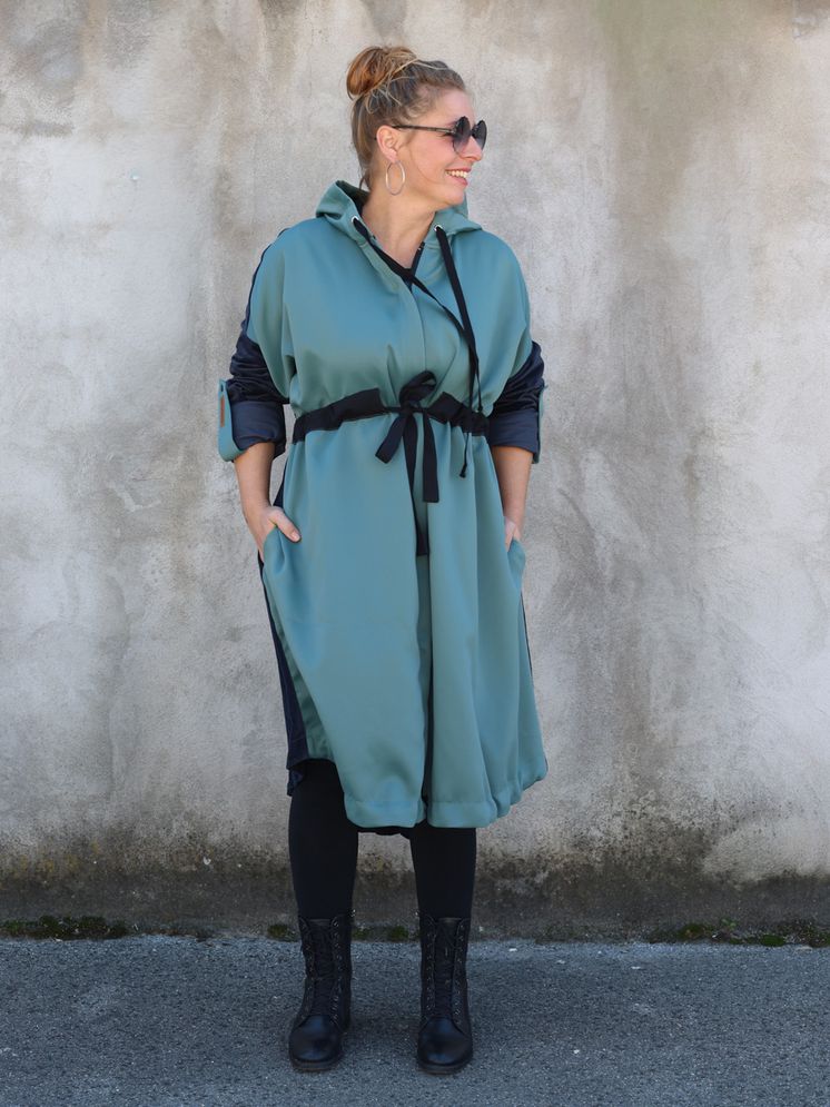 Dolazi u dvije veličine, s krojem koji se lako prilagođava različitim oblicima tijela. Parka ima zatvarač i vezice za podešavanje u struku, a pomoću trakica s prednje i stražnje strane moguće je oblikovati nabor prema želji. Funkcionalna, udobna i održiva – idealna za sve koji žele nositi odgovornu modu s karakterom.