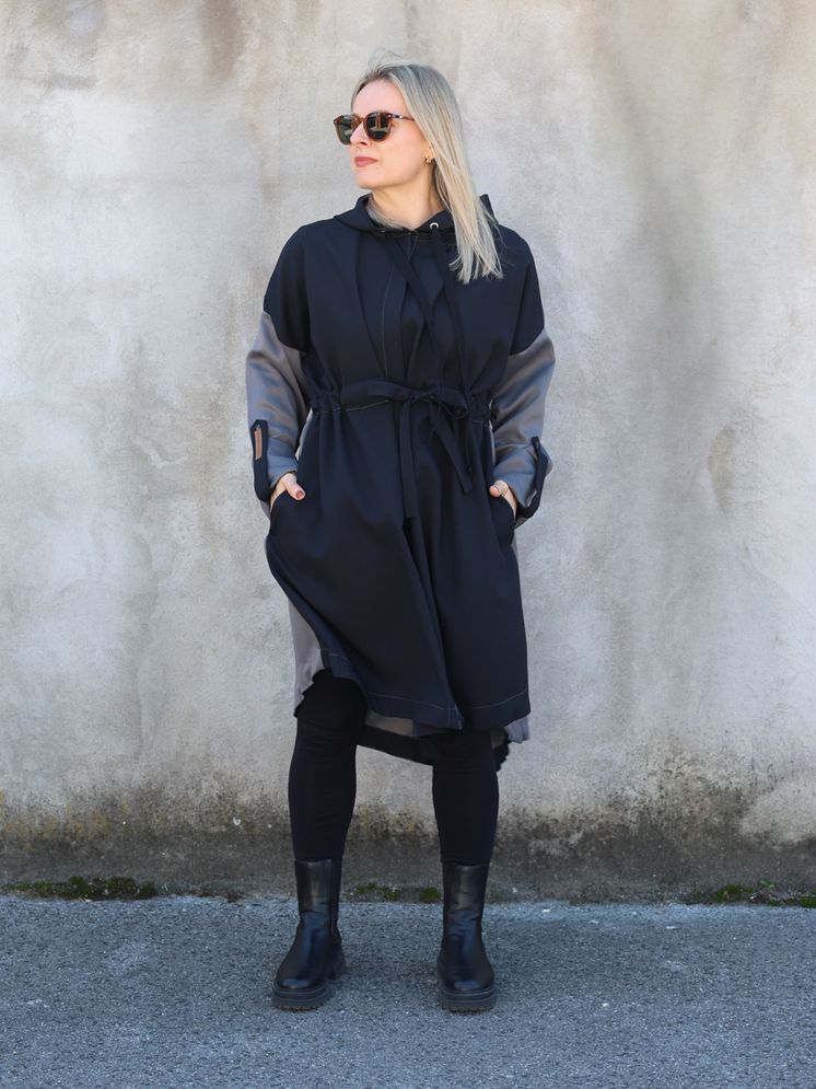 Parka je izrađena je od kombinacije prenamijenjenih materijala i ostataka iz procesa krojenja, što svaku čini unikatnom. Dolazi u dvije veličine, s krojem koji se lako prilagođava različitim oblicima tijela. Parka ima zatvarač i vezice za podešavanje u struku, a pomoću trakica s prednje i stražnje strane moguće je oblikovati nabor prema želji. Funkcionalna, udobna i održiva – idealna za sve koji žele nositi odgovornu modu s karakterom.