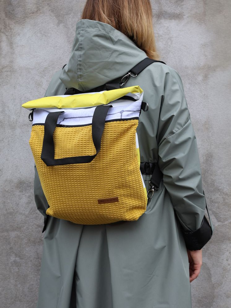 ECOVENTURE je višenamjenski ruksak izrađen u Humani Novoj od prenamijenjenih i čvrstih materijala. Zahvaljujući metalnim drukerima, gornji dio se može zarolati i zakopčati, mijenjajući oblik i volumen. Podesive naramenice, praktični džepovi (uključujući skriveni leđni i unutarnji džep s kopčom za ključeve) čine ga savršenim za organizaciju u pokretu. Kada se skinu naramenice, ECOVENTURE postaje torba – nosiva u ruci, na ramenu ili preko tijela. Svaki primjerak je jedinstven.