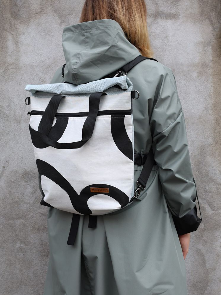 ECOVENTURE je višenamjenski ruksak izrađen u Humani Novoj od prenamijenjenih i čvrstih materijala. Zahvaljujući metalnim drukerima, gornji dio se može zarolati i zakopčati, mijenjajući oblik i volumen. Podesive naramenice, praktični džepovi (uključujući skriveni leđni i unutarnji džep s kopčom za ključeve) čine ga savršenim za organizaciju u pokretu. Kada se skinu naramenice, ECOVENTURE postaje torba – nosiva u ruci, na ramenu ili preko tijela. Svaki primjerak je jedinstven.