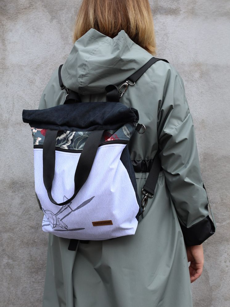 ECOVENTURE je višenamjenski ruksak izrađen u Humani Novoj od prenamijenjenih i čvrstih materijala. Zahvaljujući metalnim drukerima, gornji dio se može zarolati i zakopčati, mijenjajući oblik i volumen. Podesive naramenice, praktični džepovi (uključujući skriveni leđni i unutarnji džep s kopčom za ključeve) čine ga savršenim za organizaciju u pokretu. Kada se skinu naramenice, ECOVENTURE postaje torba – nosiva u ruci, na ramenu ili preko tijela. Svaki primjerak je jedinstven.