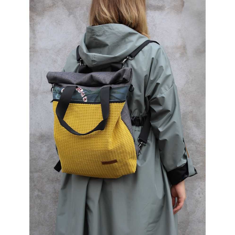ECOVENTURE je višenamjenski ruksak izrađen u Humani Novoj od prenamijenjenih i čvrstih materijala. Zahvaljujući metalnim drukerima, gornji dio se može zarolati i zakopčati, mijenjajući oblik i volumen. Podesive naramenice, praktični džepovi (uključujući skriveni leđni i unutarnji džep s kopčom za ključeve) čine ga savršenim za organizaciju u pokretu. Kada se skinu naramenice, ECOVENTURE postaje torba – nosiva u ruci, na ramenu ili preko tijela. Svaki primjerak je jedinstven.